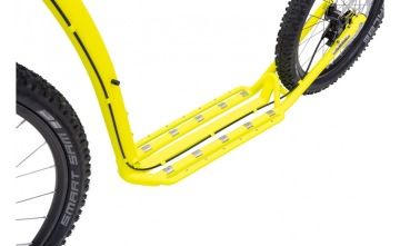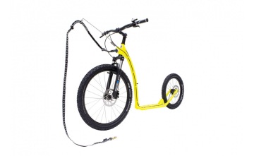 Svými rozměry se tento terénní dravec řadí mezi koloběžky pro dospělé. Je dodáván včetně vodítka a pružného adaptéru, tedy veškerého vybavení, které by měla správná koloběžka pro mushing zahrnovat. Stačí jen zapřáhnout a vydat se společně s pejskem za pořádným dobrodružstvím.