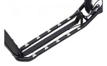 Nášlap této koloběžky s velkými koly 26"/20" je ze spodní strany opatřen výztuhou a speciálními sváry, které zpevňují rám a zároveň chrání jeho nejvíce namáhaná místa při styku s nerovnostmi.