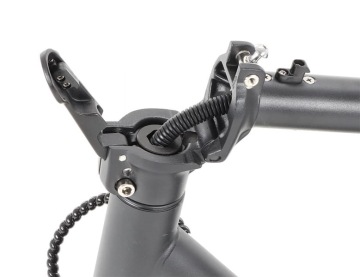 Kvalitní uzamykací mechanismus zabrání náhodnému sklopení řídítek za jízdy. Kabely jsou v chráničkách, takže se nepoškozují častým skládáním.